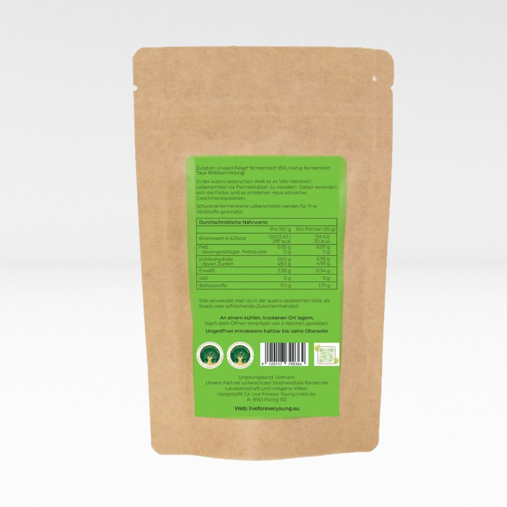 95% Feige (fermentiert), 5% Honig (fermentiert). Naturbelassen, ohne künstliche Zusatzstoffe.